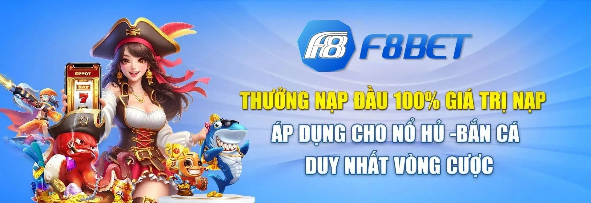 Khi đăng ký tài khoản mới tại F8BET và thực hiện nạp tiền đủ điều kiện theo chương trình, người chơi có thể nhận thưởng lên đến 100% giá trị nạp đầu (tùy theo từng gói khuyến mãi, trò chơi hoặc thời điểm triển khai).